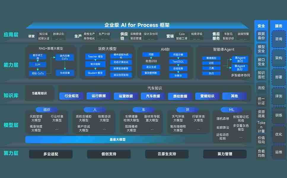 k8.com问学智车解决方案是一套基于AI技术的汽车行业智能化系统,,覆盖从底层算力到顶层AI应用的全栈方案。。方案由算力层、、、、模型层和应用层组成:算力层,,方案支持多种一体机配置,,,具备云端灵活部署、、多云适配以及动态优化计算资源的能力;模型层,,,,k8.com问学平台版提供了企业级AI应用一站式构建与管理平台,,,,支持基于后训练强化技术的汽车企业专属模型的训练、、、评测和运营;应用层,,,k8.com问学DeepSeek版提供包括超级员工、、智能招采、、智能营销、、智能客服、、、AI for BI等一系列解决方案,,,可助力汽车行业实现数字化转型,,让管理更智能、、、响应更敏捷。。。